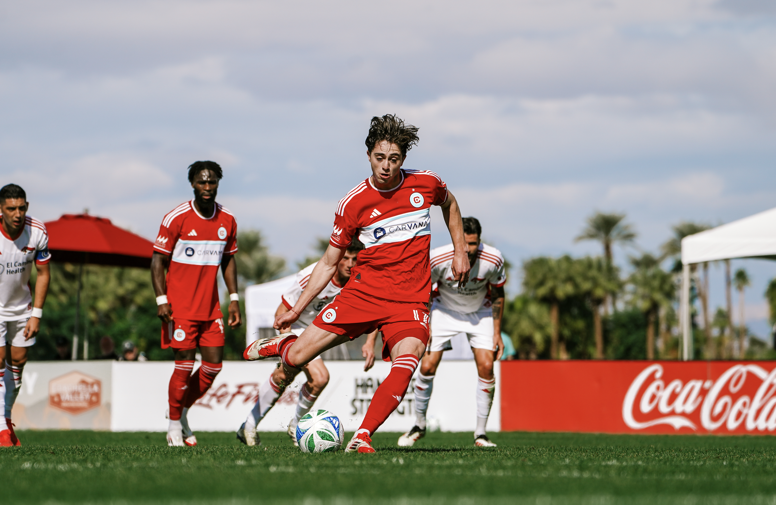 The Chicago Fire are truly up and running in preseason, finally getting their first win at the Coachella Valley Invitational this afternoon. Gregg Berhalter's offense exploded in a thrilling first half, putting up five goals within 34 minutes to crush the San Jose Earthquakes 5-1.
