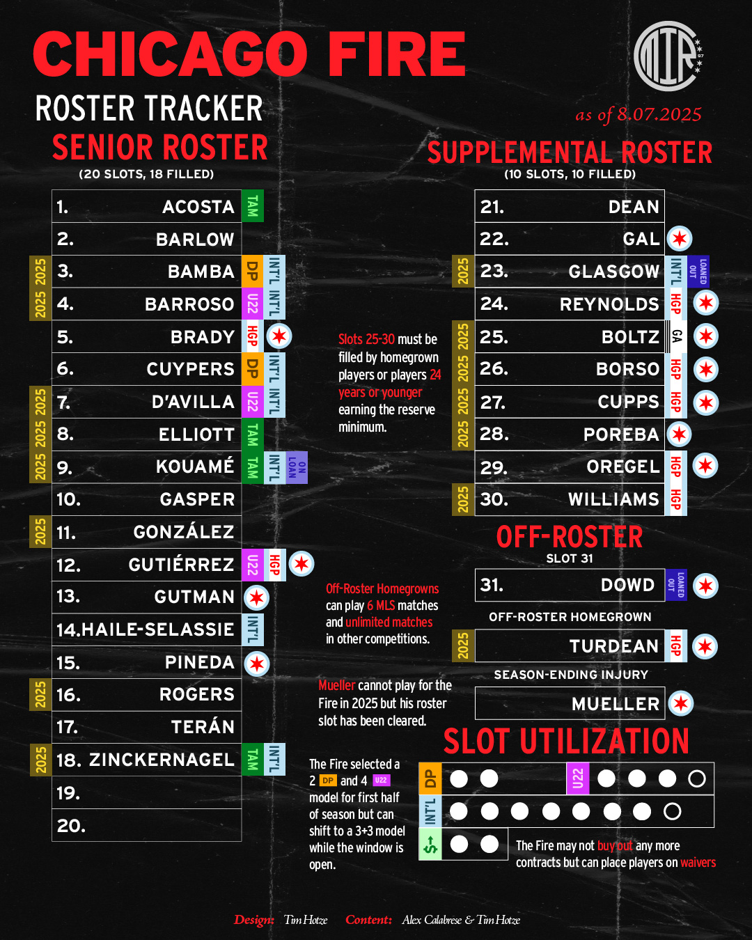 Just ahead of the window’s opening, the Fire announced that Chris Mueller was being placed on the season-ending injury (SEI) list as a result of his ongoing battle against pericarditis. The move freed Mueller’s roster spot and enables the team to sign a replacement player, up to an equivalent salary cap hit.